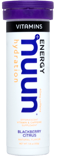 - nuun vitamins comes in 6 flavors: blueberry pomegranate, tangerine lime, grapefruit orange, strawberry melon, blackberry citrus (with caffeine), and ginger lemonade (with caffeine)